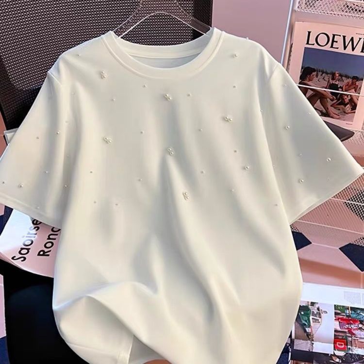 Elegant Pearl-Studded Oversized T-Shirts ✨
